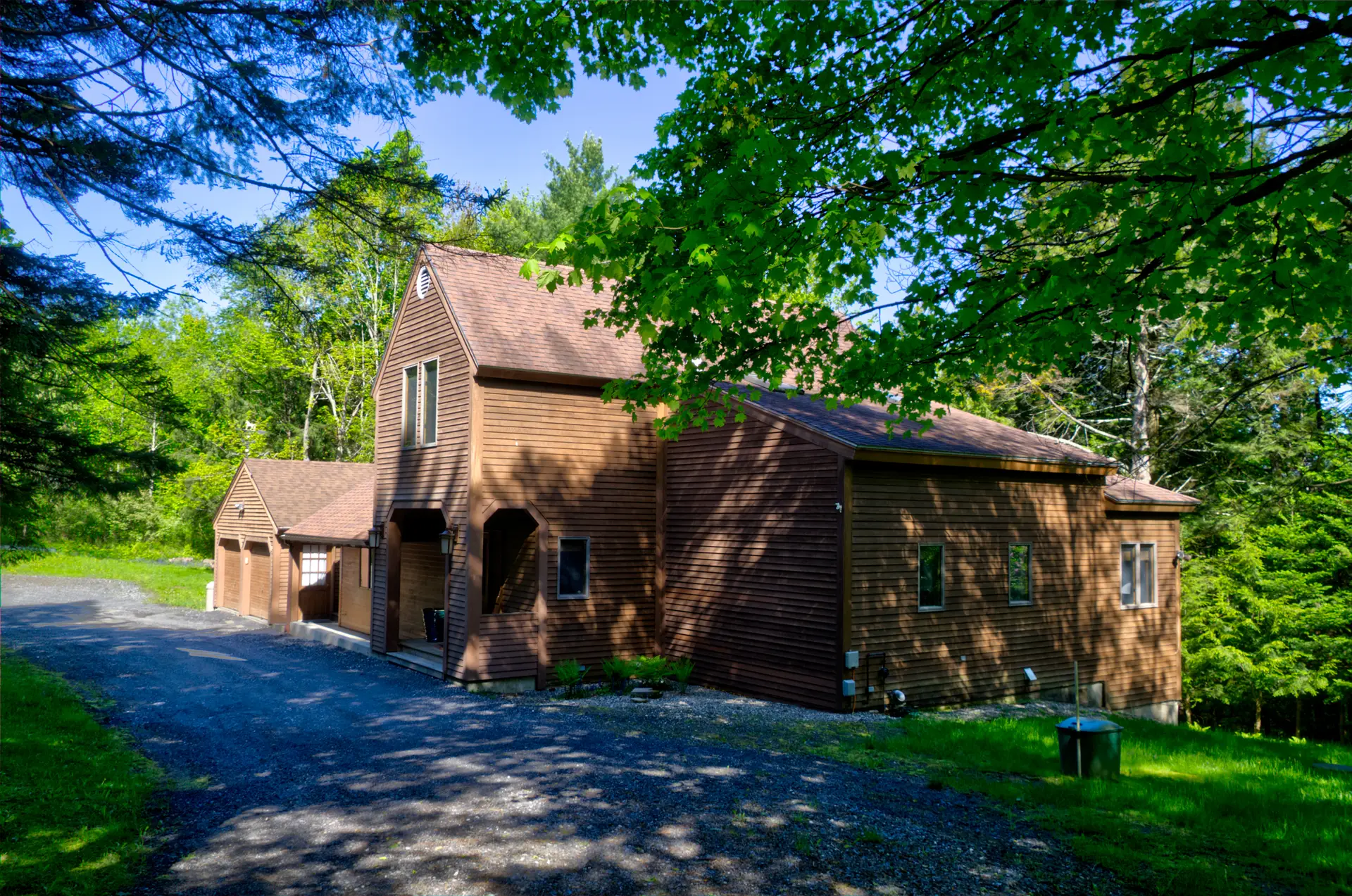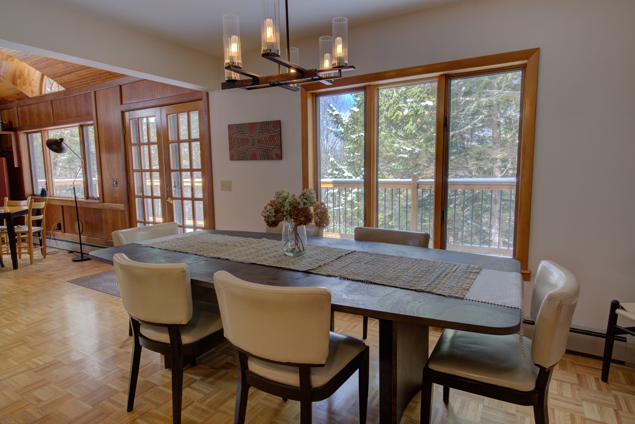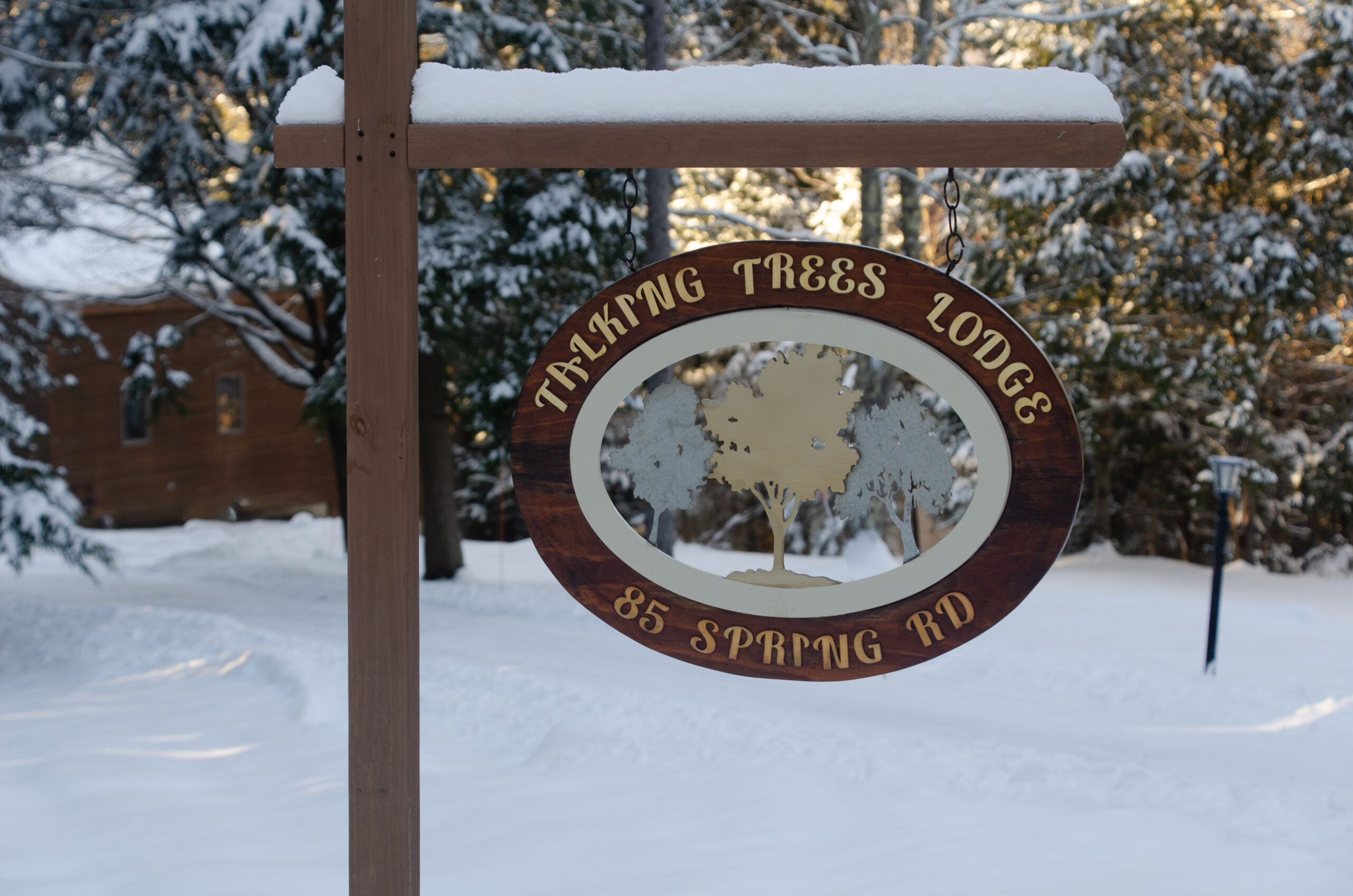 Walk out onto the wrap-around deck of Talking Trees Lodge, a winter holiday home, and find yourself aloft in 100’ pines and soaring birch and maple trees. Our ski vacation home, a 3 story lodge with 4 bedrooms and 4 baths, is nestled on our private glen located in a quiet wooded area of Mansfield View. The vacation home is approx 3 miles north to downtown Stowe shops and restaurants and an 11 minute shortcut to Mountain Rd. which leads to Stowe Mountain Ski Resort, Spruce Peak Ski Resort and the von Trapp Family Ski Touring Resort.